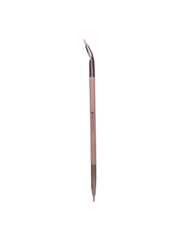 Pincel para delinear tem dois formatos de ferrolho, cada um se tornando adaptável para cada pessoa. Conta com uma ponta angulada que permite uma linha de precisão com facilidade e firmeza, sendo ideal para a aplicação de delineadores líquidos ou em gel.